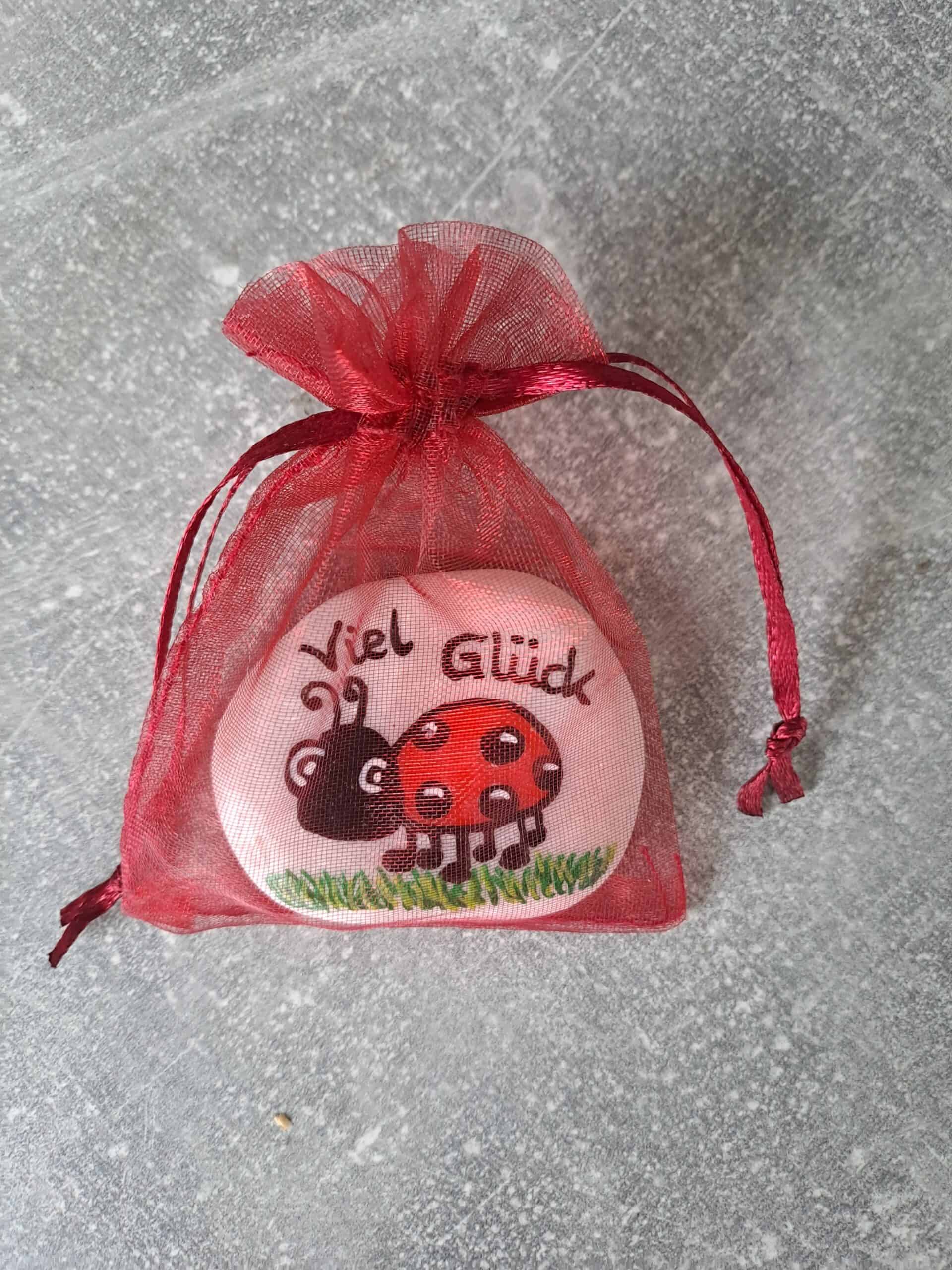 Mit dem Glücksstein „Viel Glück“ für die Hosentasche mit Glückskäfer erhältst du einen liebevoll gestalteten Begleiter, der gerne Mut macht und große Freude schenkt. Ob als Aufmunterung vor einem wichtigen Moment, als täglicher Glücksbringer oder als Zeichen, dass jemand an dich denkt – dieser handliche Stein ist immer zur Stelle, wenn ein bisschen Glück erforderlich ist.