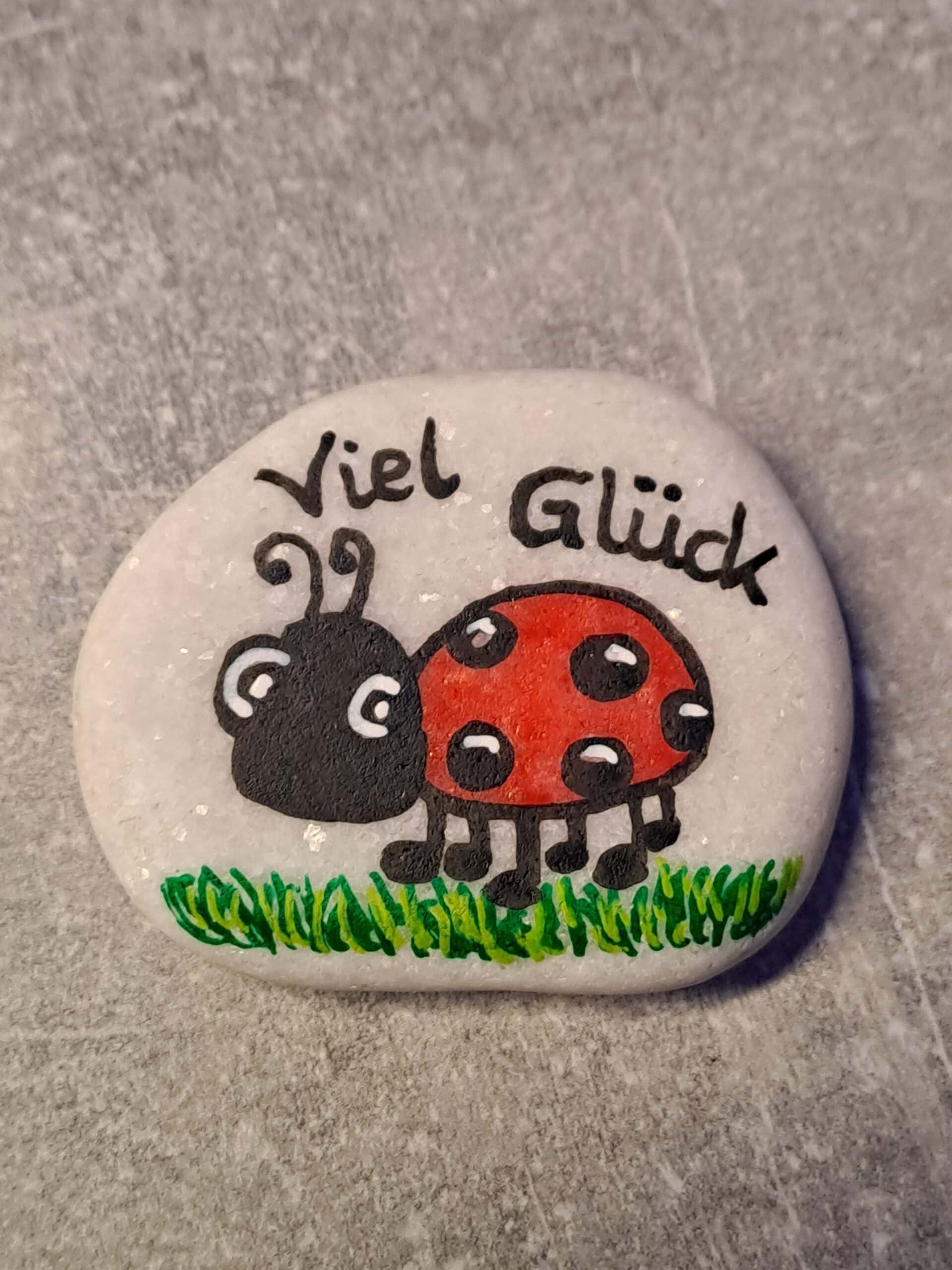- Dieser handbemalte Glücksstein ist ein kleiner Begleiter, der positive Energie und Zuversicht vermitteln soll. Mit liebevollen Details gestaltet, bringt er Glück und Freude – perfekt als persönlicher Talisman oder als Geschenk für jemanden, der dir am Herzen liegt. Als Mini-Stein passt er auch z. B. perfekt in die Hosentasche, damit man ihn jederzeit bei sich tragen und von seiner positiven Energie und der liebevollen Botschaft, die er vermittelt, profitieren kann.